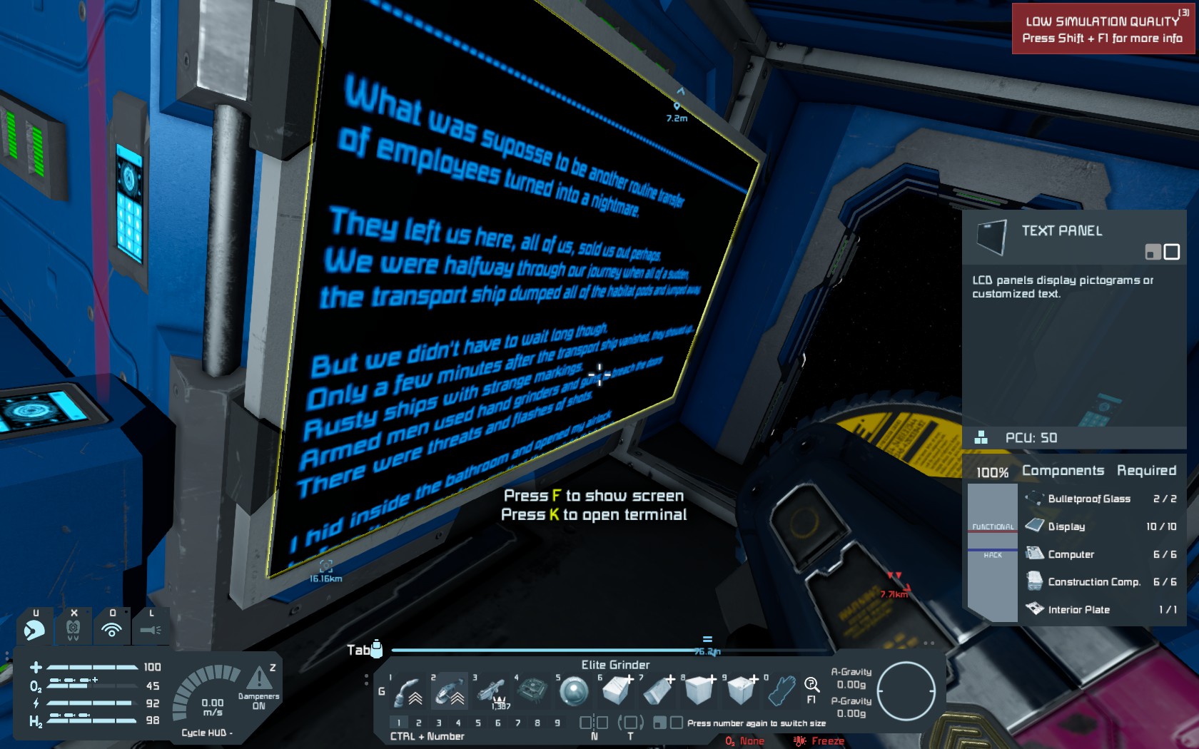 You must turn off your programmable blocks when you are logged off or away from the area, particularly performance-intensive scripts like Isy’s Inventory Manager, PAM, etc.