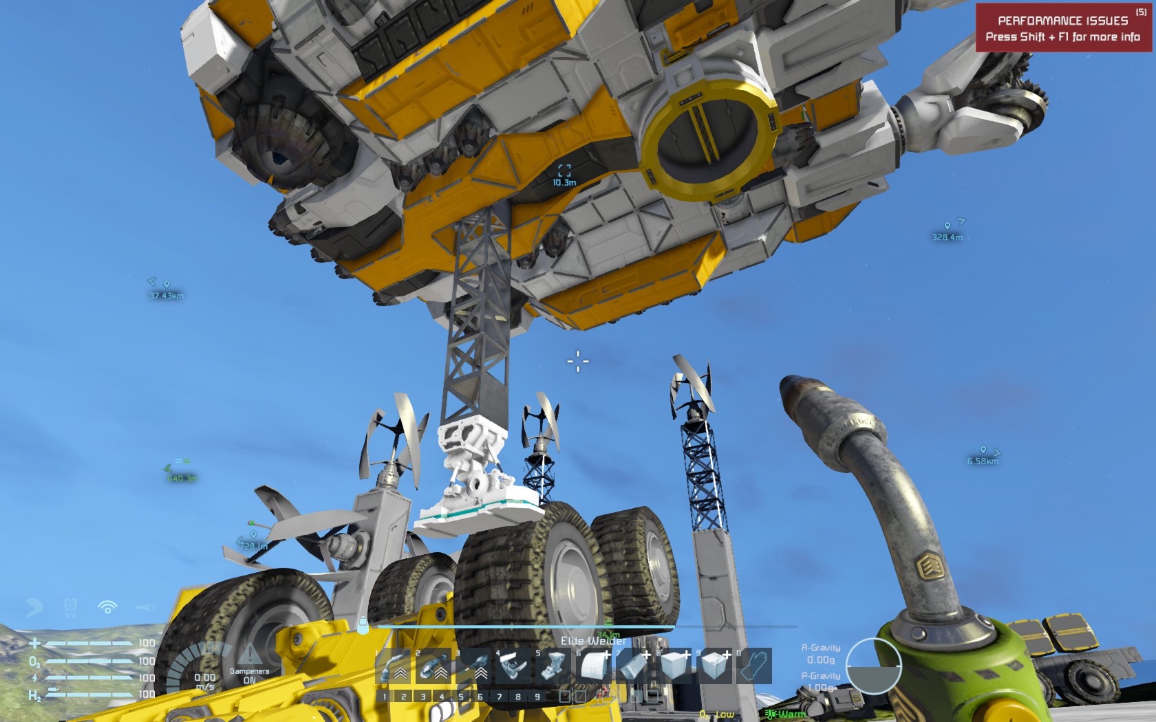 The Space Engineers Dedicated Server software considers grids linked by connectors, landing gear or magnetic pads to be ONE entity, which we call Grid Clusters>. We have established limitations on a per-grid basis to ensure continued smooth server performance for all players. Each grid or gird cluster may have: